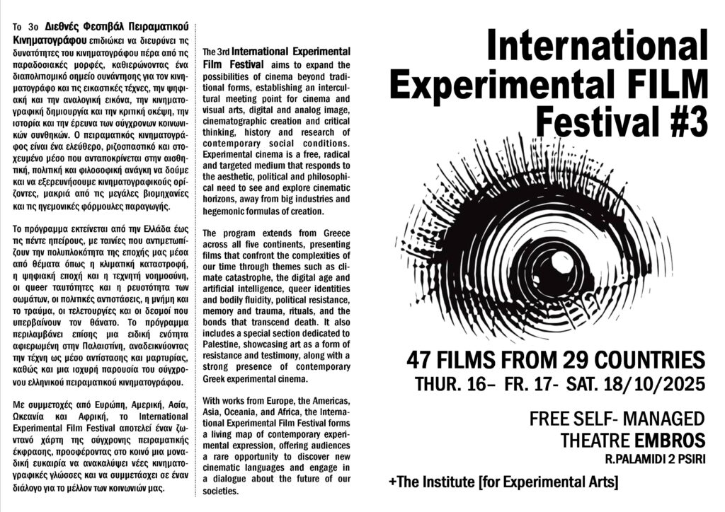 The film “Wherever Street Piece” will be screened at the 3rd International Experimental Film Festival in Athens, Greece on October 16th, 17th & 18th. The screening will take place in the Video Art Zone at the Festival area. More info here.